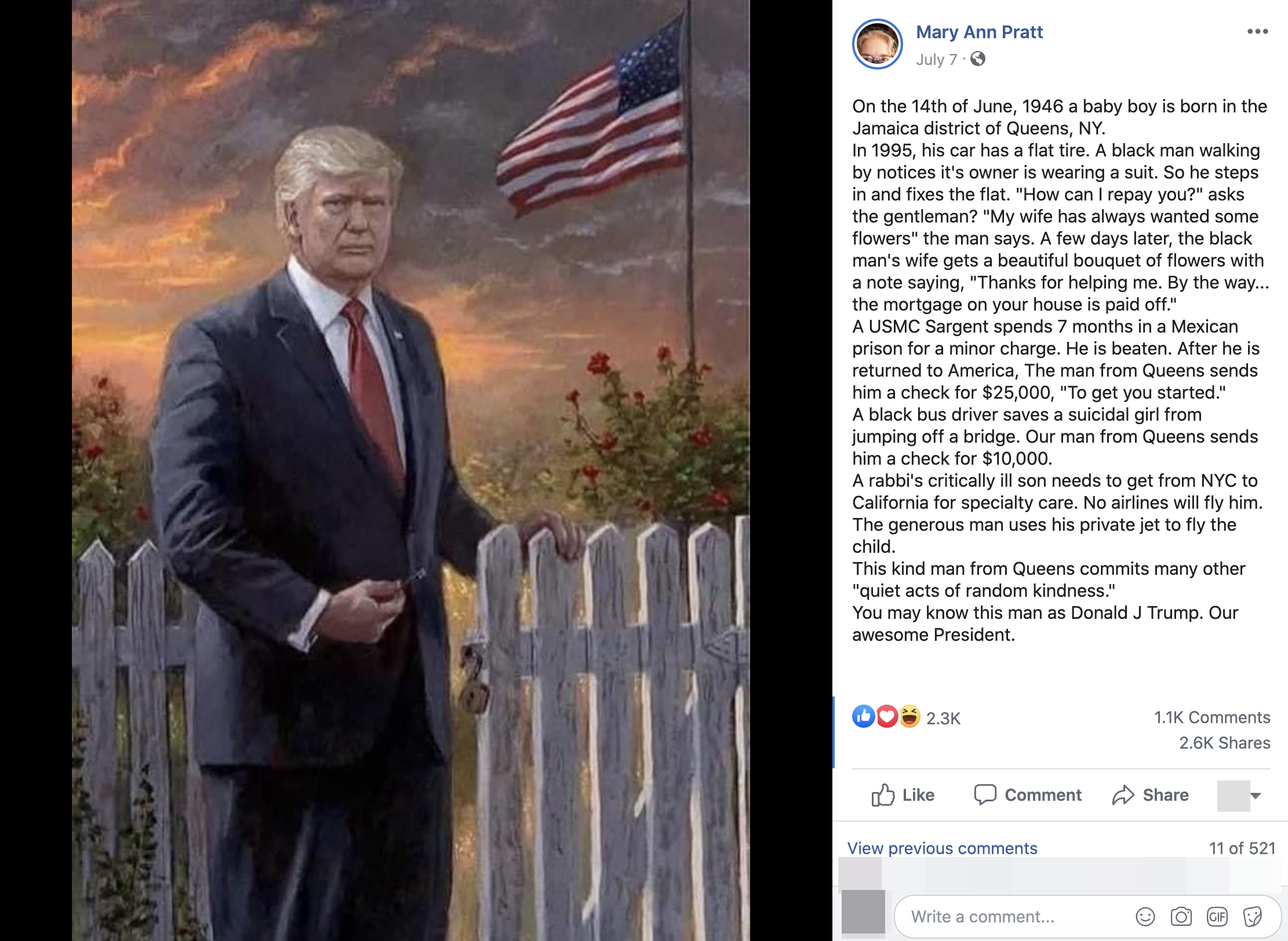 In the summer of 2020, multiple readers asked Snopes to verify the accuracy of a widely-shared Facebook post that listed several “quiet acts of random kindness” purportedly performed by U.S. President Donald Trump: