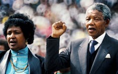 Winnie with Nelson Mandela after his release from prison in 1990.
